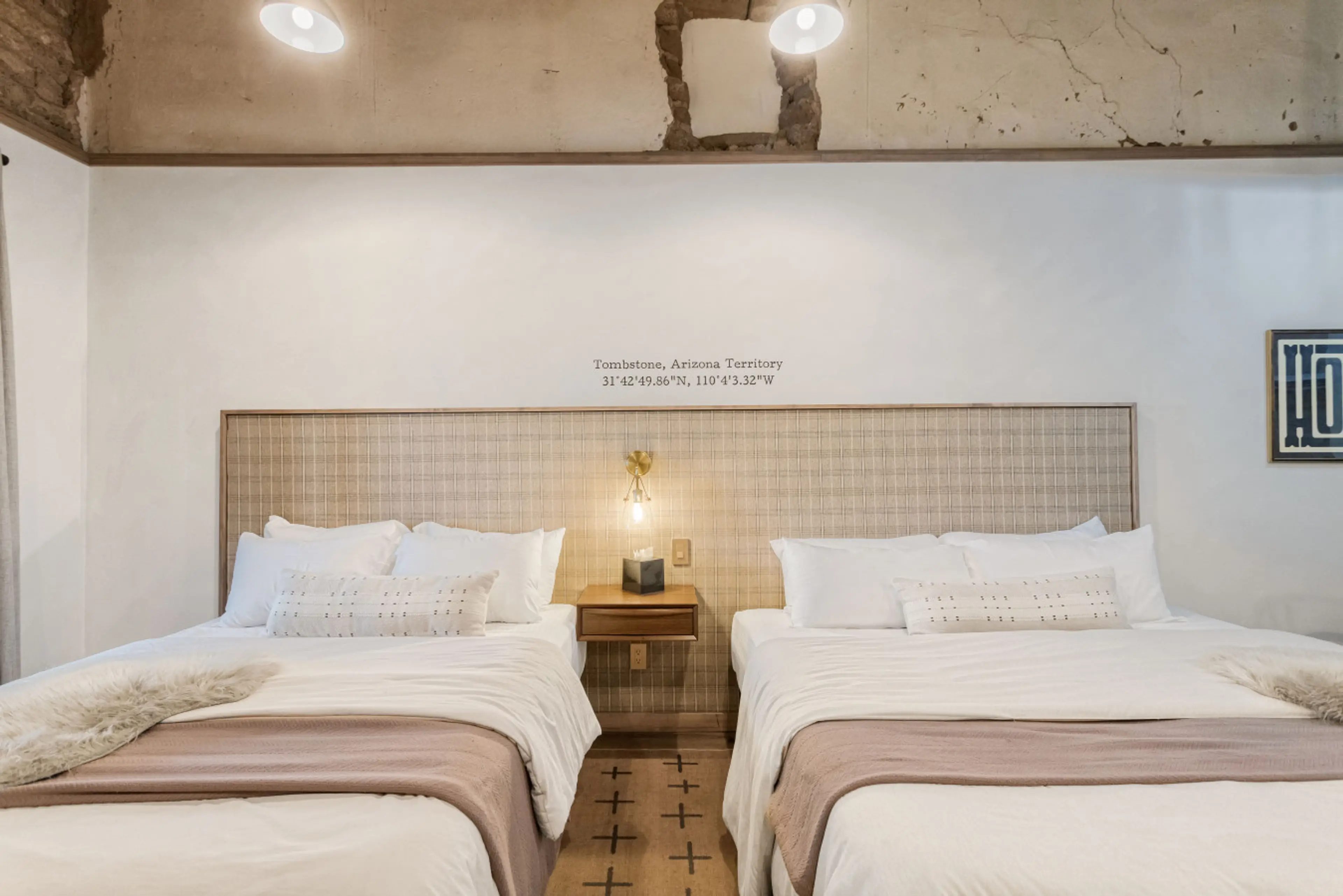 Newly Renovated hotel right in the heart of Tombstone Arizona. Clean and comfortable. This particular room is in the original adobe Livery building from the 1800's. We have renovated the rooms but kept the charm by exposing some of the adobe and timbers. Walking distance to Allen Street where there ...
